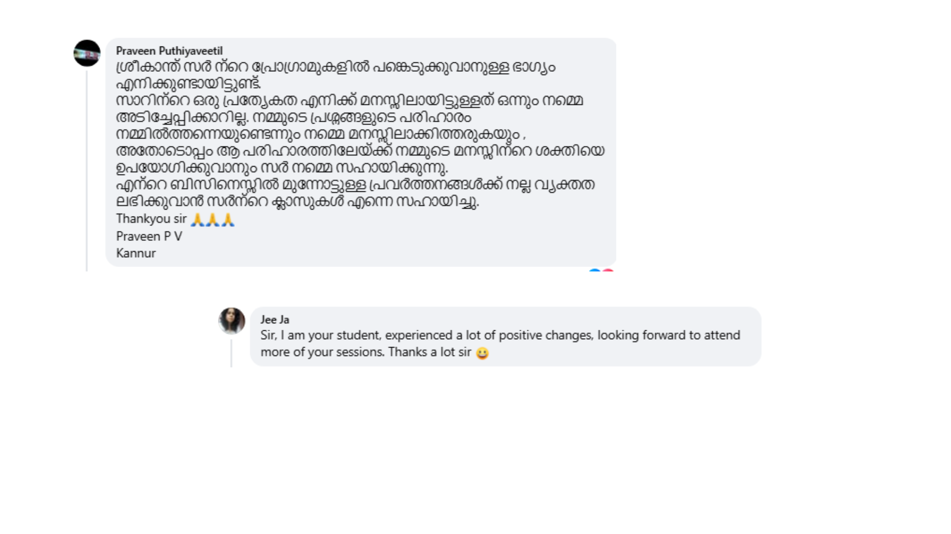 🌱 “നിങ്ങളുടെ “സെൽഫ് ഇമേജ്” രൂപാന്തരപ്പെടുത്തുന്നതിലൂടെ നിങ്ങൾ ആഗ്രഹിച്ച രീതിയിലുള്ള ഒരു വ്യക്തിയായി മാറാനുള്ള വഴികാണിച്ചുതരുന്ന 21 ദിവസത്തെ വാട്ട്സ്ആപ്പ് വർക്ക്ഷോപ്പിൽ പങ്കെടുക്കാം.