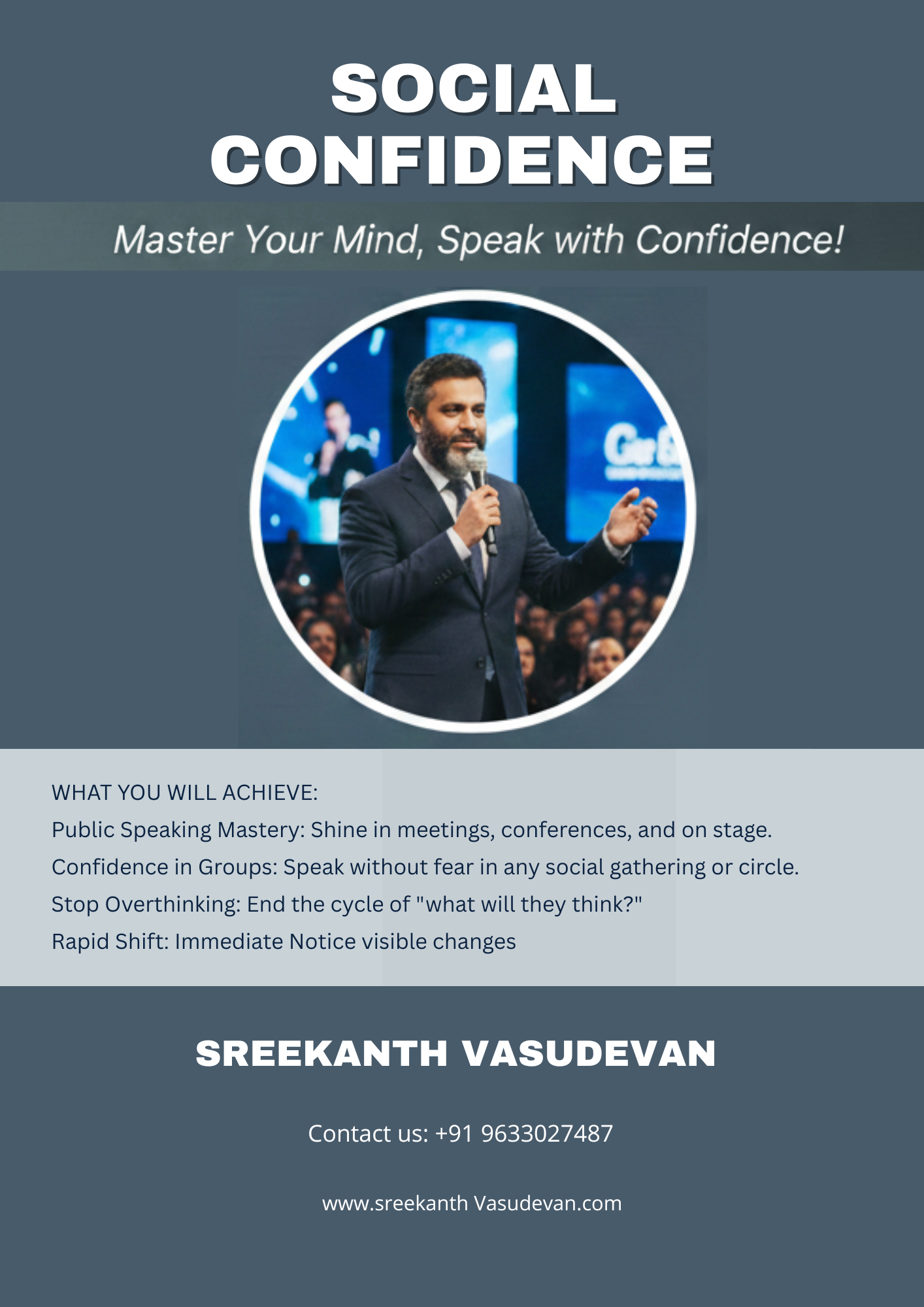 Trainer Sreekanth Vasudevan (Expert in NLP & Hypnosis) 20 വർഷത്തെ അനുഭവസമ്പത്തിലൂടെ ലഭിക്കുന്ന Intensive Sessions. ഒപ്പം Self-Hypnosis Audio, NLP Practices എന്നിവയിലൂടെ 1-2 ആഴ്ചയ്ക്കുള്ളിൽ മാറ്റം ഉറപ്പ്!